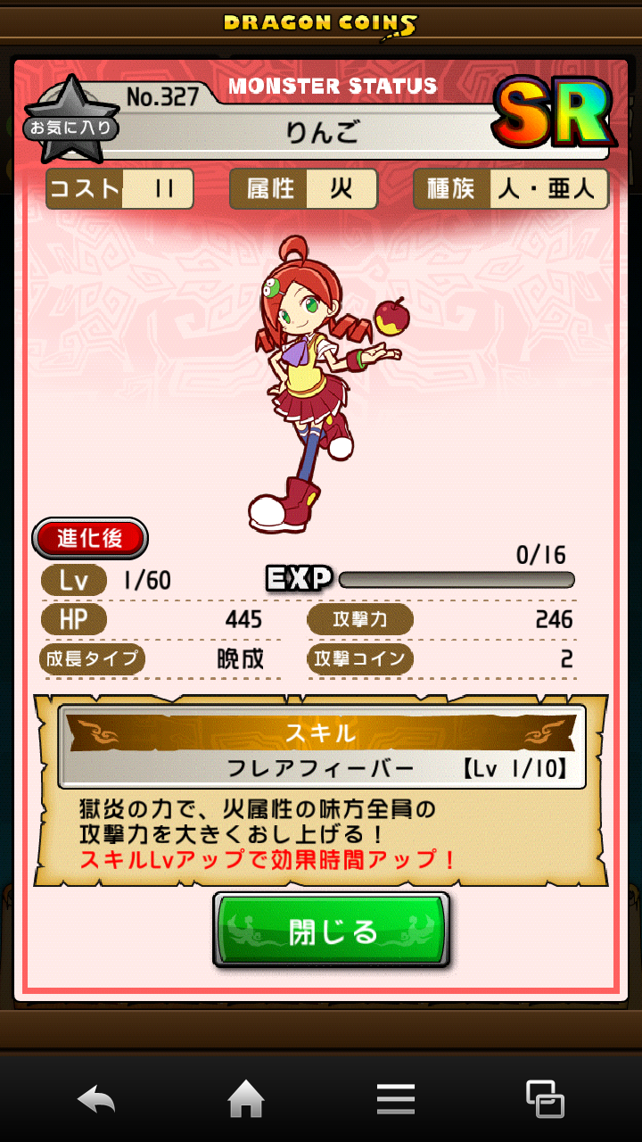 スキルは「火属性の攻撃を大きくアップ」です。