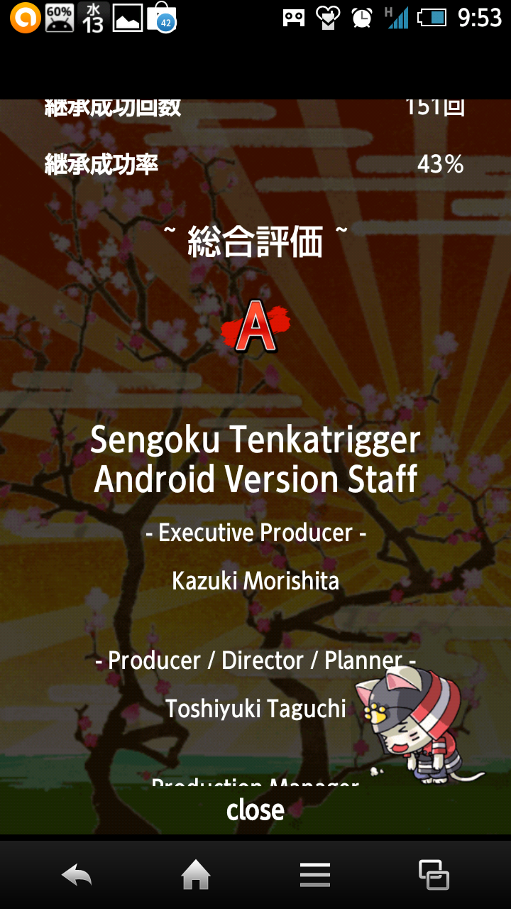 一周年キャラを駆使して、無課金で「天下統一」できましたー!