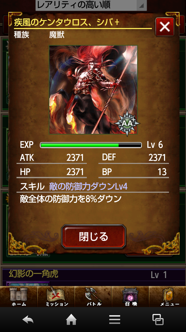 もう1体のAA+は、現在実施中の500万人突破イベントでゲットした「疾風のケンタウロス、シバ+」です。