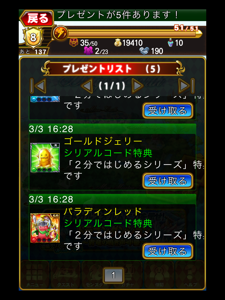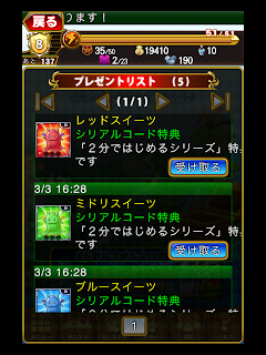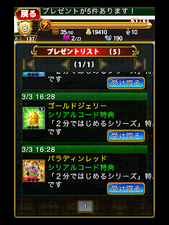早速シリアルコードを入力すると、5個のプレゼントがもらえます。