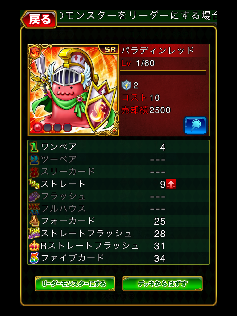 メイン攻撃の「ワンペアが4ダメージ」、防御の「盾が2」と大変お得なキャラです!